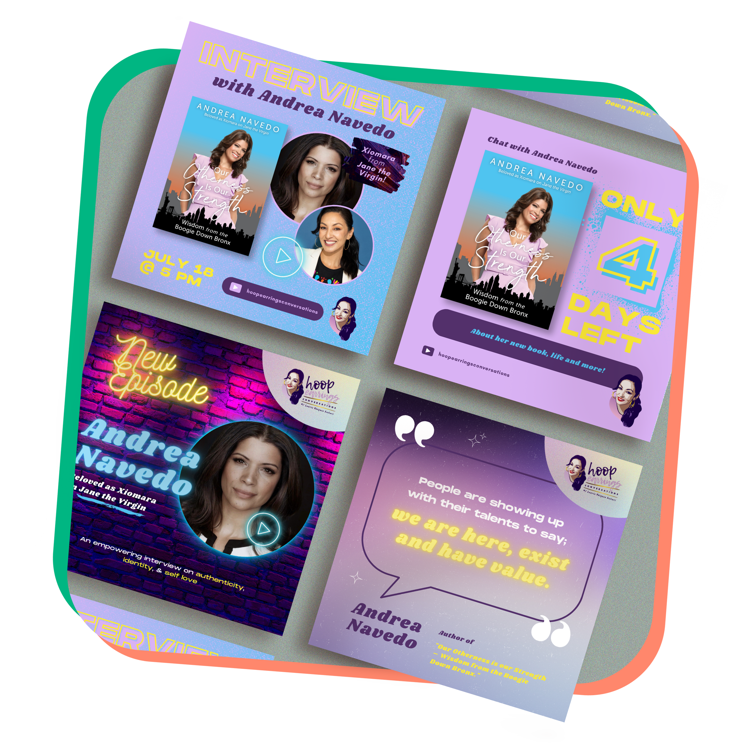 Pinch me, I must be dreaming! I had the incredible opportunity to create content to promote an interview with Jane the Virgin’s, Andrea Navedo hosted by Laurie Vásquez Scolari of Hoop Earring Conversations.